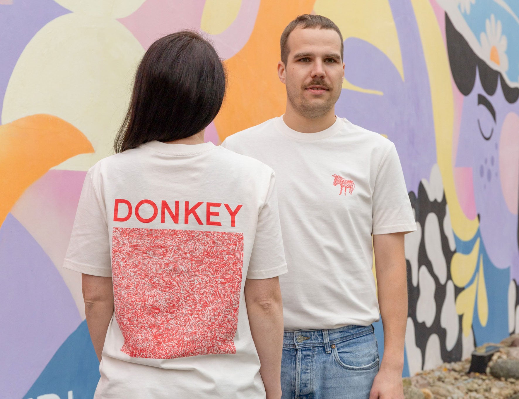 Alongside our classic DONKEY design featuring our iconic scribble — which, by the way, includes at least four donkeys if you look closely — we’ve also created a second, completely new design in collaboration with designer Christian Kandel. Its one mission? To spread happiness! Both designs are available as T-shirts and sweaters.