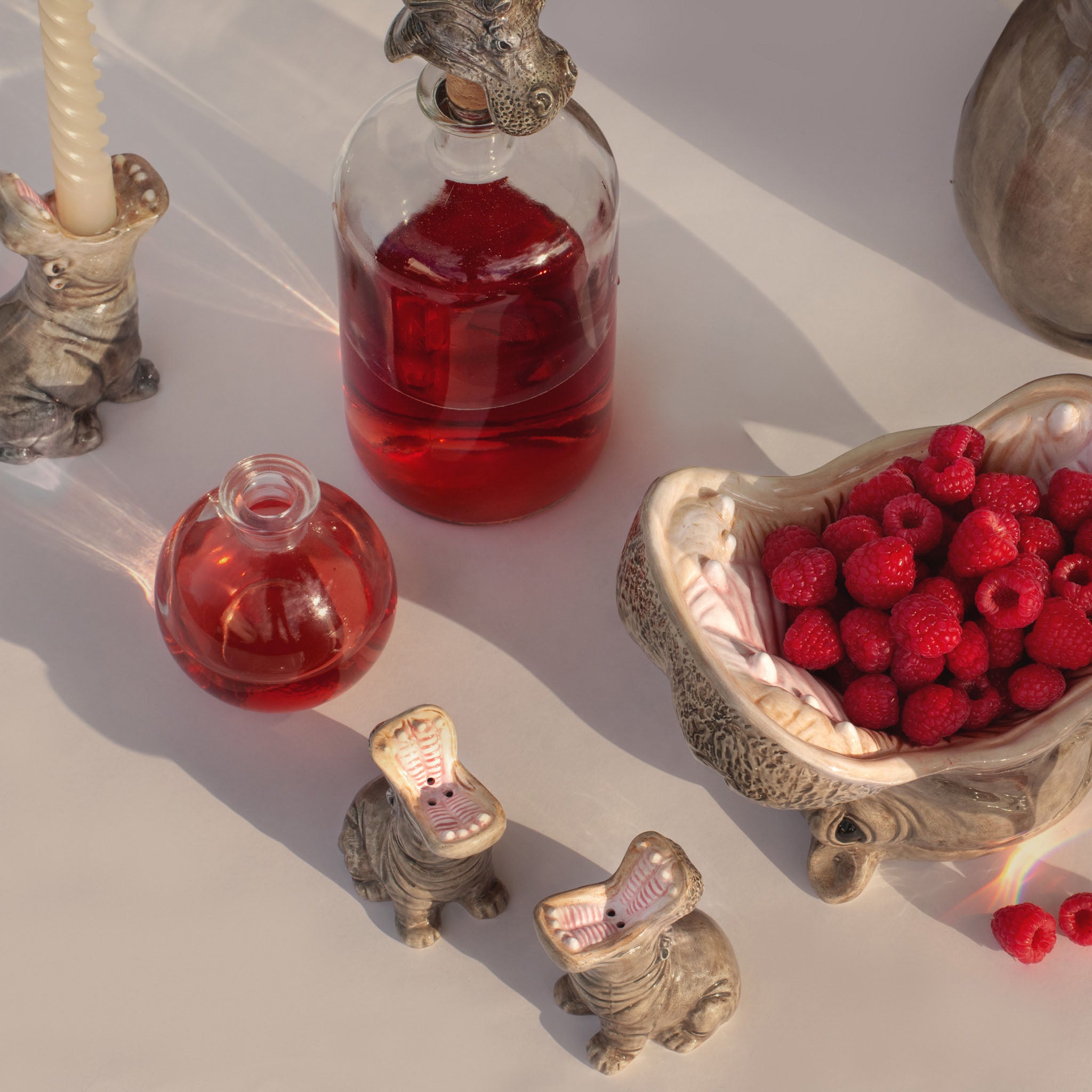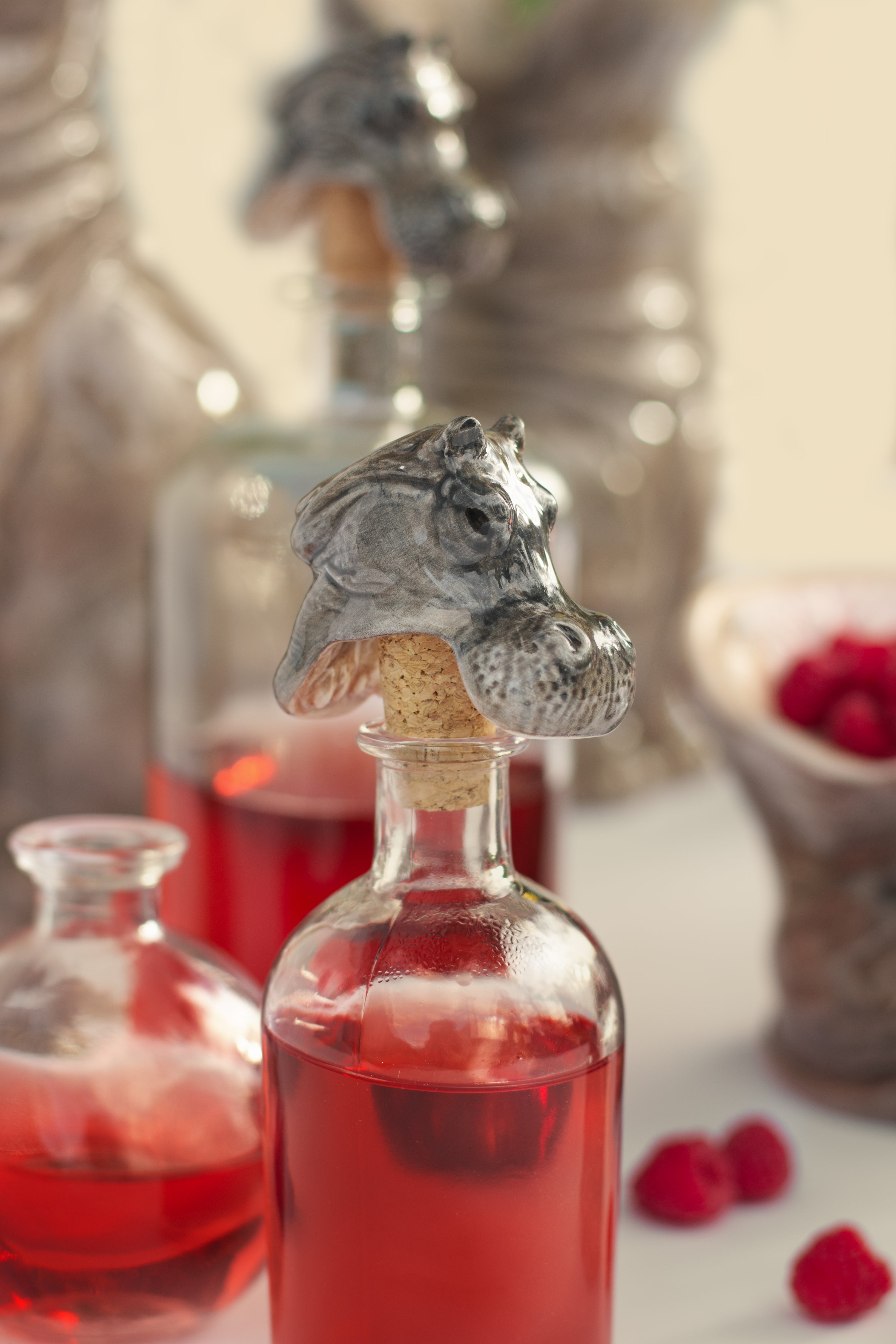 Whether alone as a bottle sealer or as a herd with matching vase and candle holders, these hungry hippos are the perfect gift for those who adore the extraordinary.